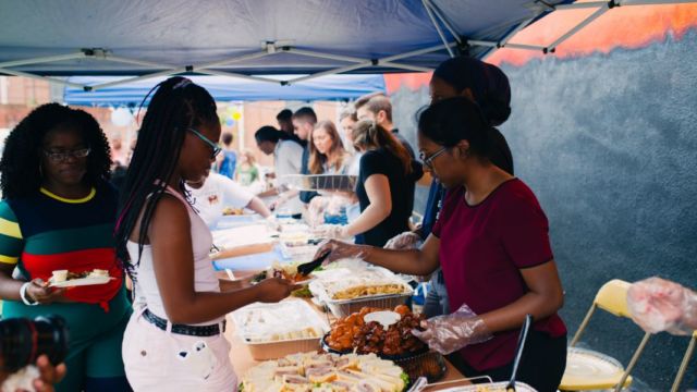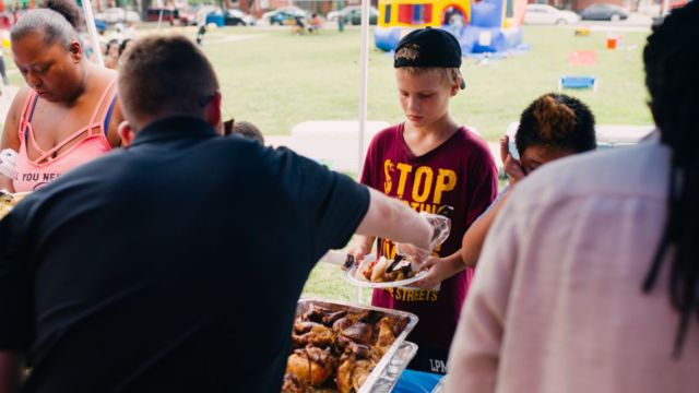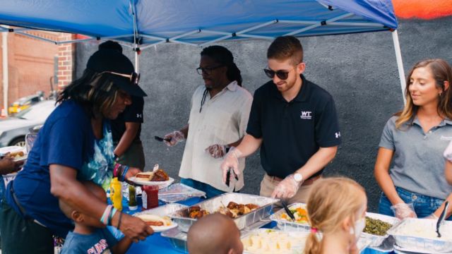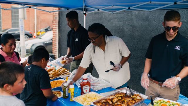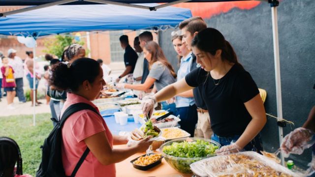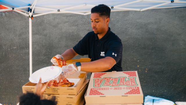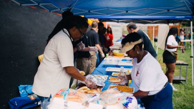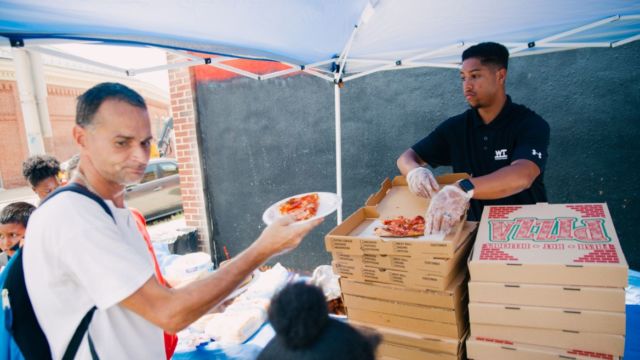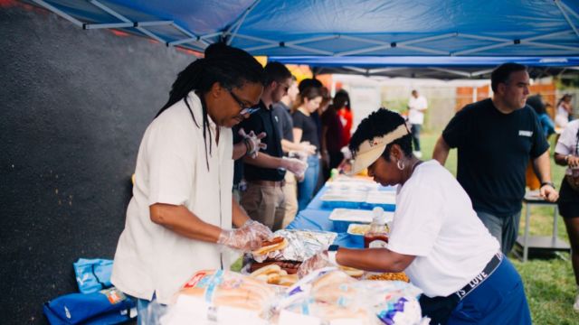 None of this would have been possible without the many generous volunteers who donated their time. Thank you to the sponsors who sent in monetary donations and supplies and restaurants and caterers who provided food for the event. Most volunteers assisted with handing out the various food options which included: 20 boxes of pizza, over 180 hot dogs, Peruvian chicken, greens, mashed potatoes, chicken and shrimp penne pasta, vegetarian penne pasta, meatballs, macaroni and cheese, BBQ chicken sliders, Caesar salad and breadsticks, deli sandwiches, buffalo chicken bites and cookies.